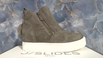 j/slides nyc khaki suede sky sneakers, womens, sz 6.5